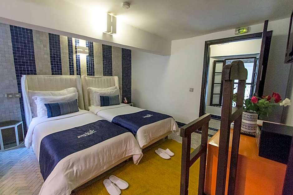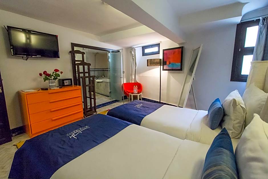 This spacious, air-conditioned room features a mezzanine sleeping area and a seating area. It includes a flat-screen TV with satellite channels, a private, tadelakt bathroom with bathrobes, free toiletries and a bathtub.