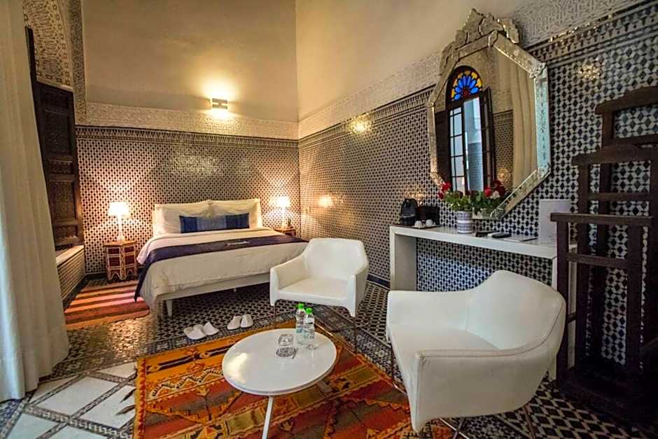 This spacious, air-conditioned room features a mezzanine sleeping area and a seating area. It includes a flat-screen TV with satellite channels, a private, tadelakt bathroom with bathrobes, free toiletries and a bathtub.